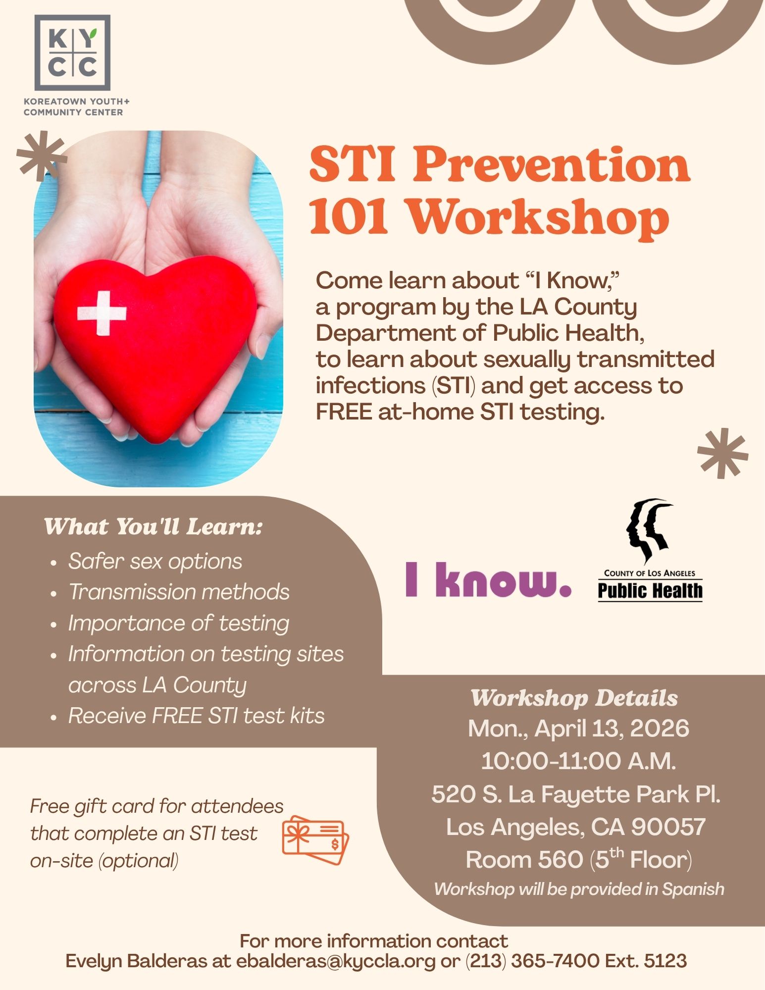 Come learn about “I Know,” a program by the LA County Department of Public Health, to learn about sexually transmitted infections (STI) and get access to FREE at-home STI testing.
