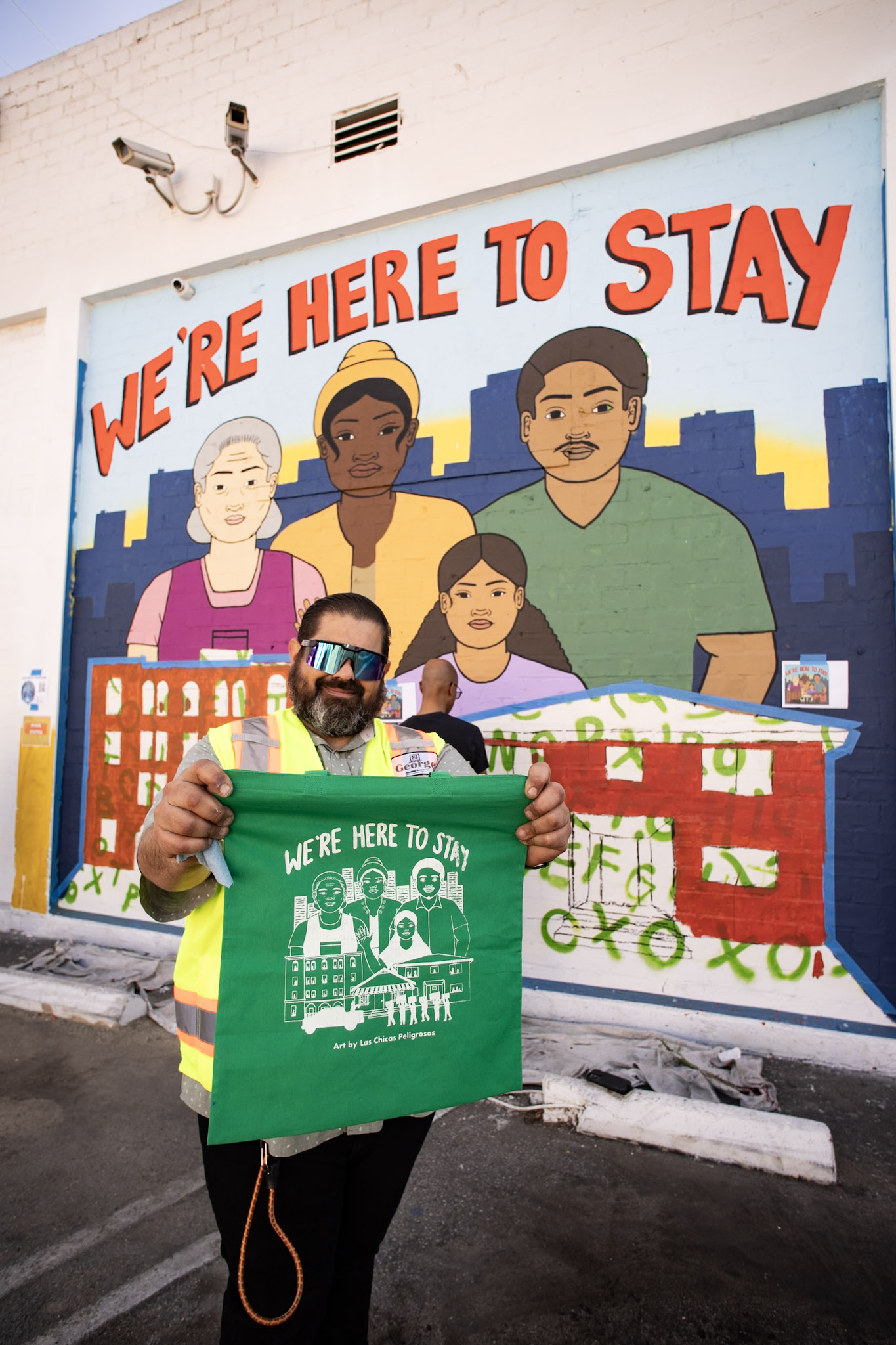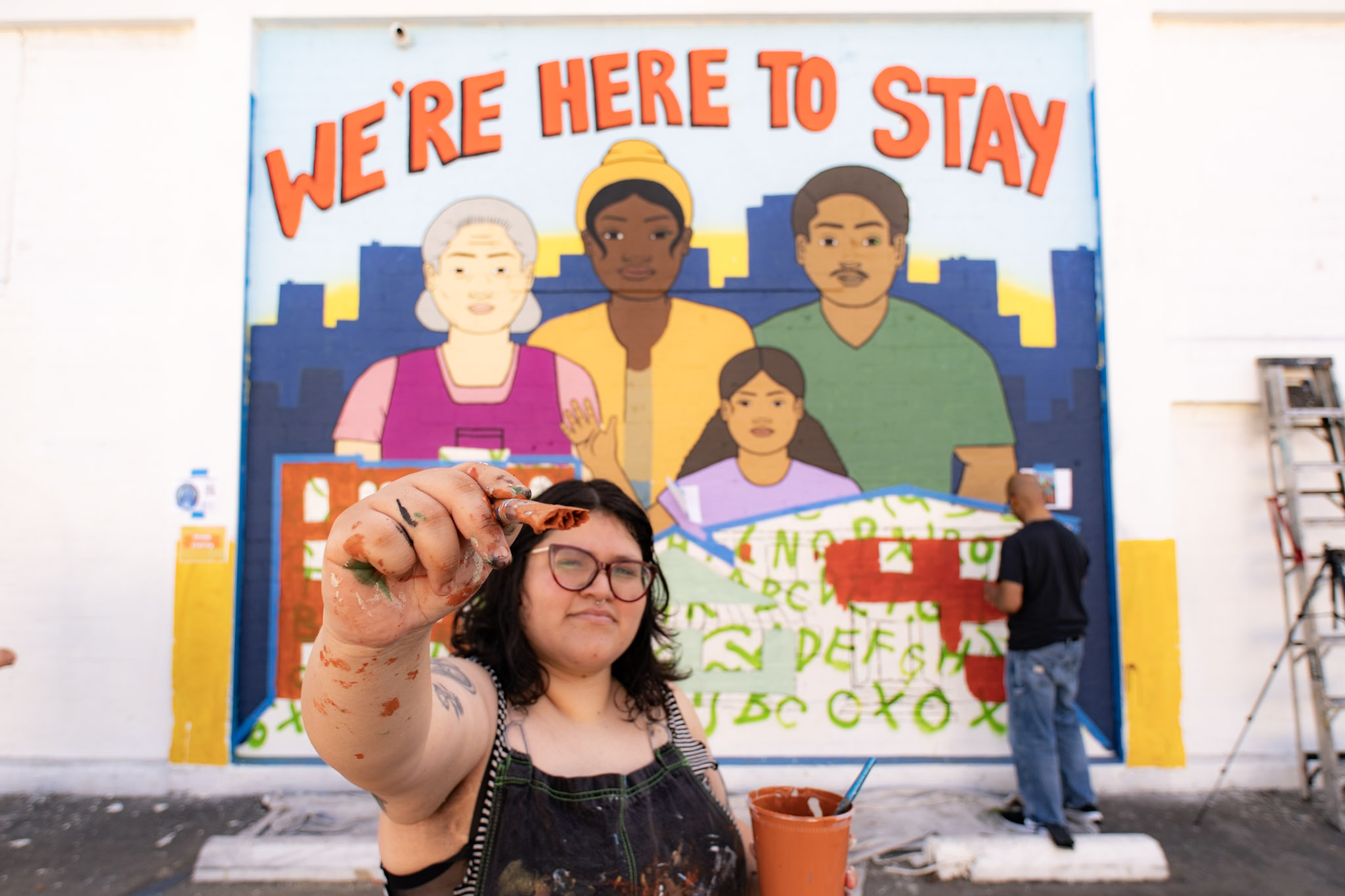 On March 21, 2026, the initiative concluded with a community mural project, “We Belong Here,” a permanent, community-created installation that reflects resident voices and serves as a lasting symbol of belonging, cultural pride, and collective resilience in Koreatown. To bring the mural to life, KYCC partnered with local artist Jacqueline Hernandez, also known as Las Chicas Peligrosas, whose work centers community narratives through bold, visually compelling illustrations that uplift diverse cultures, neighborhoods, and identities. Through this collaboration, community stories were transformed into a vibrant public artwork that reflects the voices and lived experiences of Koreatown residents.